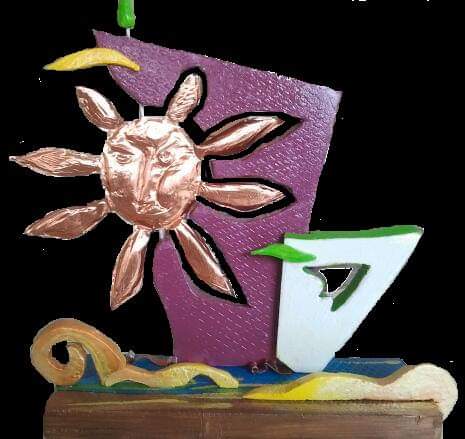 Il pesce e l'uccellino: "stabile" in fogli di pvc sagomati (h cm 43)