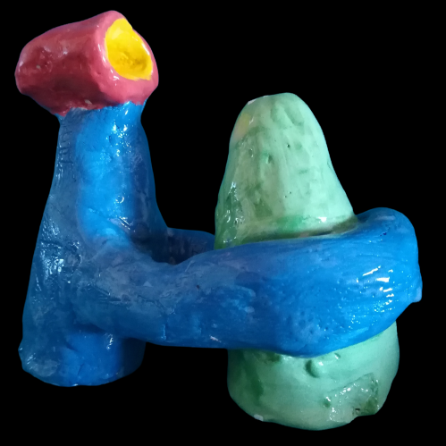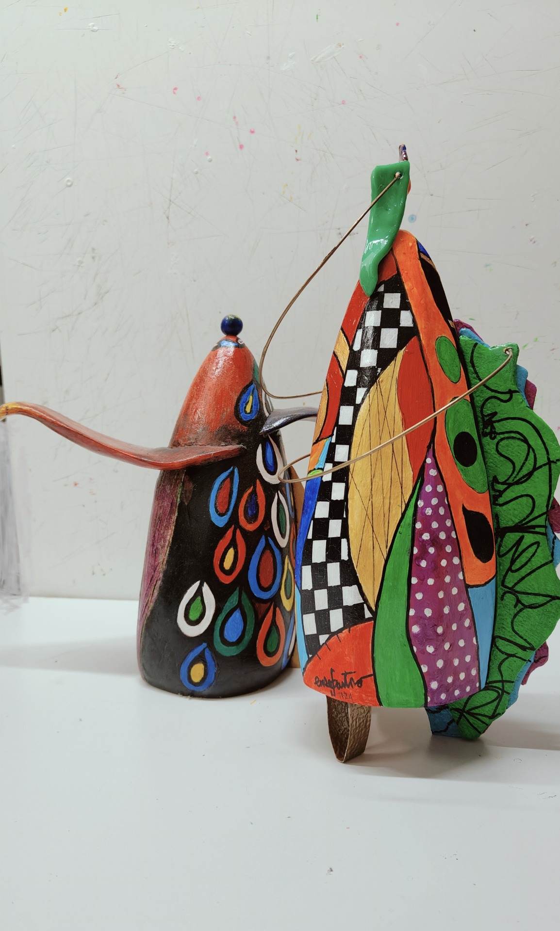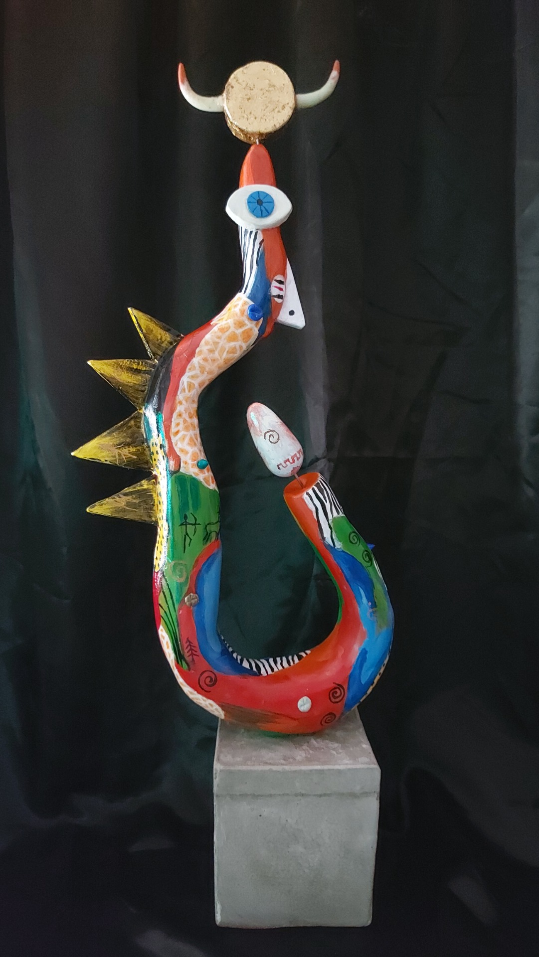 Hip Pop - struttura in cartone, gesso, col acrilici, decorazioni argilla polimerica (dim. h cm 40)