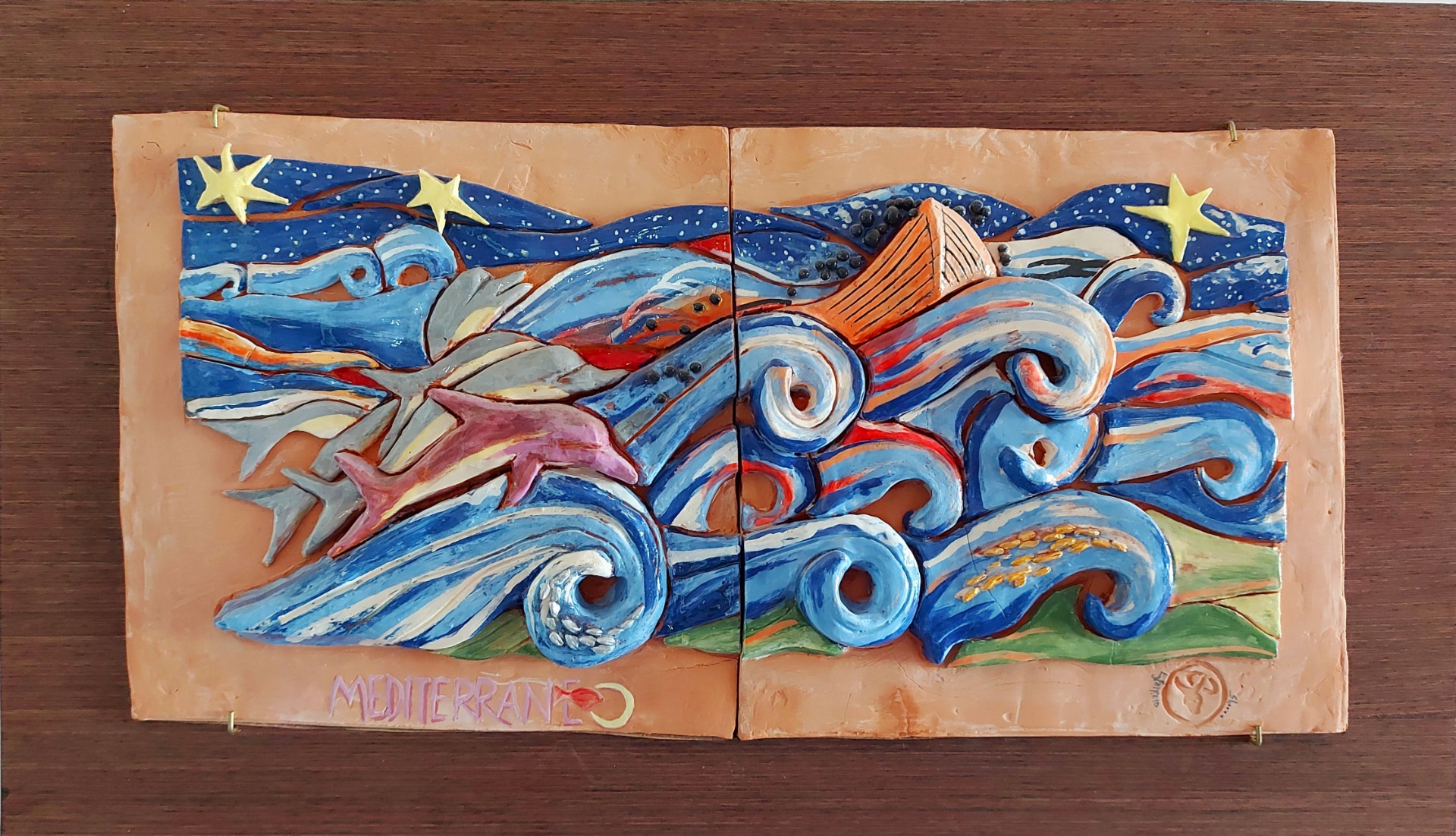 Mediterraneo: altorilievo in ceramica con smalto ad ingobbio (dim.cm 68x40)
