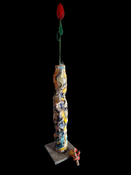 Shoah: monolite in ceramica smaltato ad ingobbio con portafiore (